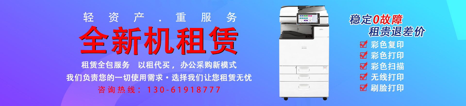 很多企業(yè)用戶在自己購買復印機,還是租賃復印機的時候,顯得搖擺不定。那兩者間到底有什么區(qū)別?上海宇川作為上海復印機租服務商。由我們?yōu)榇蠹以敿氈v解兩者間的區(qū)別。1、辦公耗材:購買復印機后,還需要購買其他配套產(chǎn)品,另外還要自學如何更換耗材和維護機器。租賃復印機除了打印用紙以外,其他耗材均由復印機服務商來定期更換。2、技術(shù)員上門服務:購買復印機后,如果出現(xiàn)問題,需要聯(lián)系專門的售后,但是這類的售后都是有償上門服務。租賃復印機由專業(yè)的售后團隊免費上門服務,保障售后。3、設備折舊風險:購買復印機后,使用一段時間,機器的功能需要升級、設備容易貶值。租賃復印機由多種機型任意選擇,可以使用新機型,選擇余地大。綜上所述:復印機租賃性價比較高,省錢、省時、